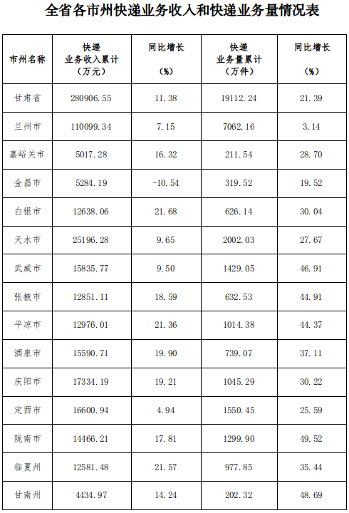 2025年5月甘肃省邮政行业运行情况